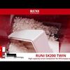 RUNI SK200TWIN sneglekomprimator er den maskine i EPS serien, der anbefales hvor der er brug for hurtigt at komprimere en mængde EPS, men hvor den årlige EPS volumen ikke ligger på mere end 50 tons. Ved brug af en sneglekomprimator kan EPS’en (også kendt som flamingo) komprimeres i forholdet op til 50:1, hvilket svarer til at 50 lastbiler der før skulle bruges til bortskaffelse nu kan erstattes af blot en enkelt. Densiteten af den komprimerede EPS er ca. 350 kg/m³. De producerede blokke kan stables på en palle og sælges til genanvendelse. Der kan være ca. 20 tons i en lastbil eller container.